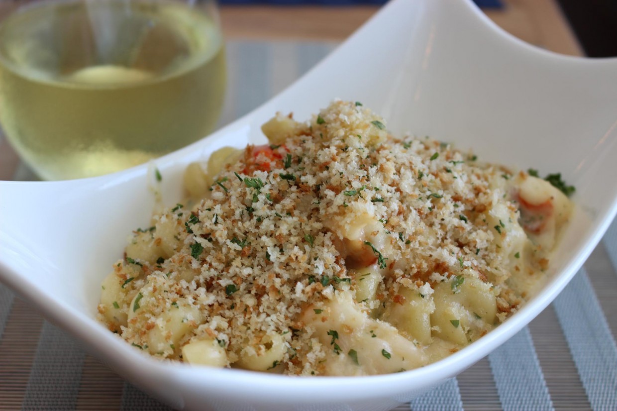 Cavatappi pasta, Florida lobster, smoked gouda, parmesan bread crumbs