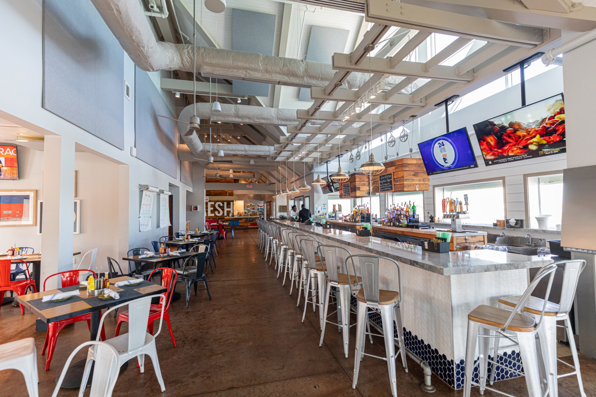Angler and Ale is located on the docks of Hawks Cay Marina.