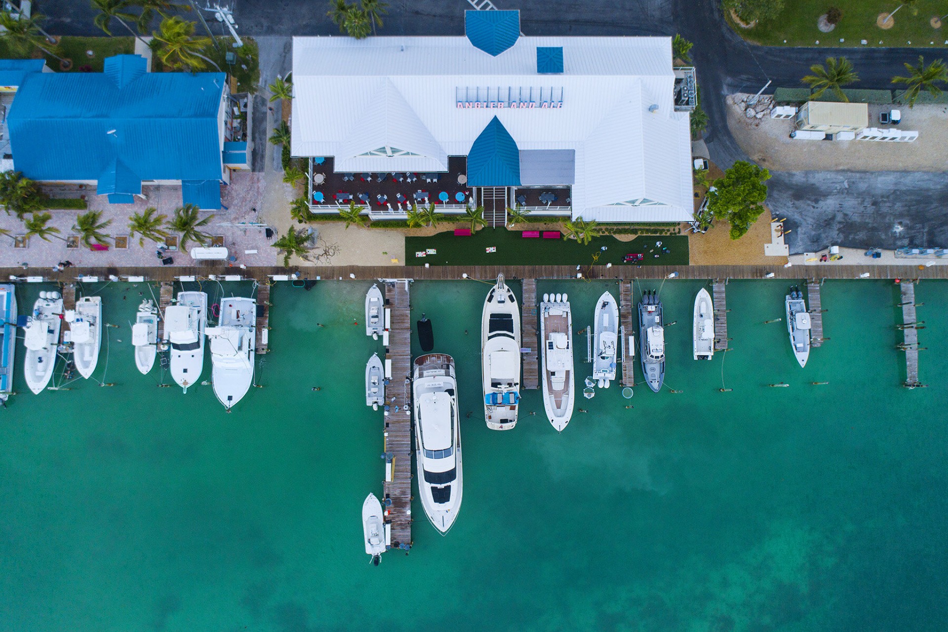 Aerial view of Hawks Cay Marina and Duck Key in the Florida Keys.